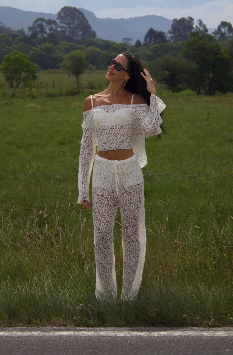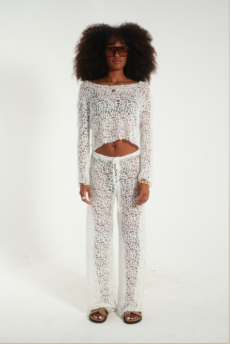 Calça Brisa- saída de praia estilosa-malha artesanal