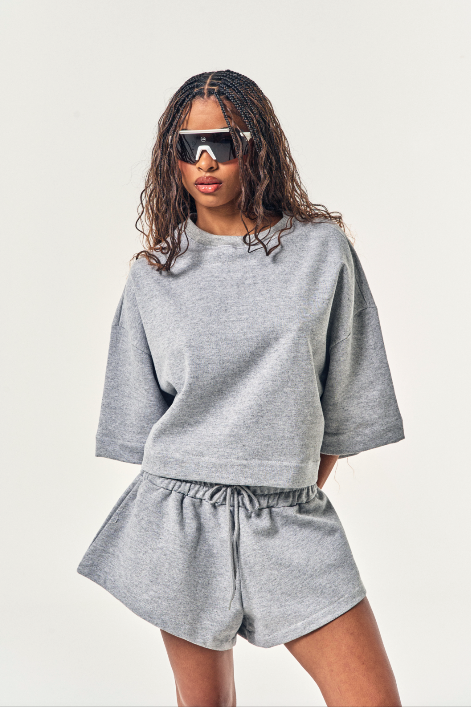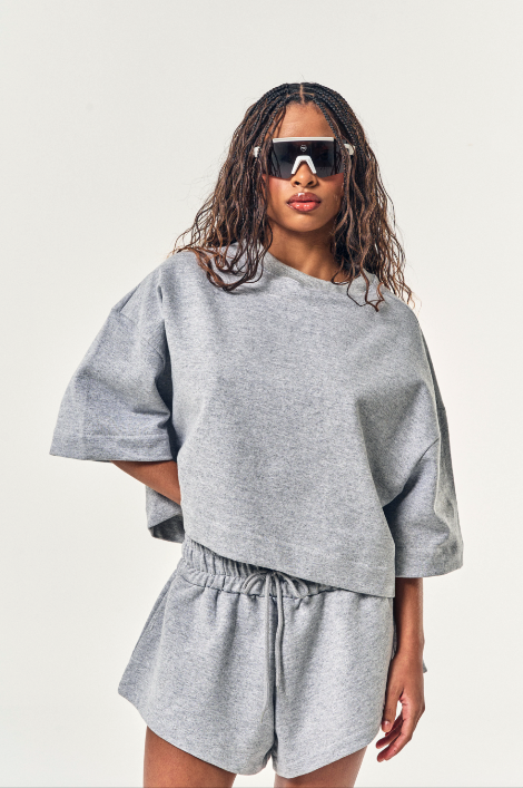 Modelo Raquel( de branco e cinza ) veste P e mede 1,60