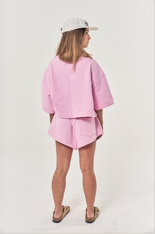 Modelo Malu (de rosa ) veste P e mede 1,58